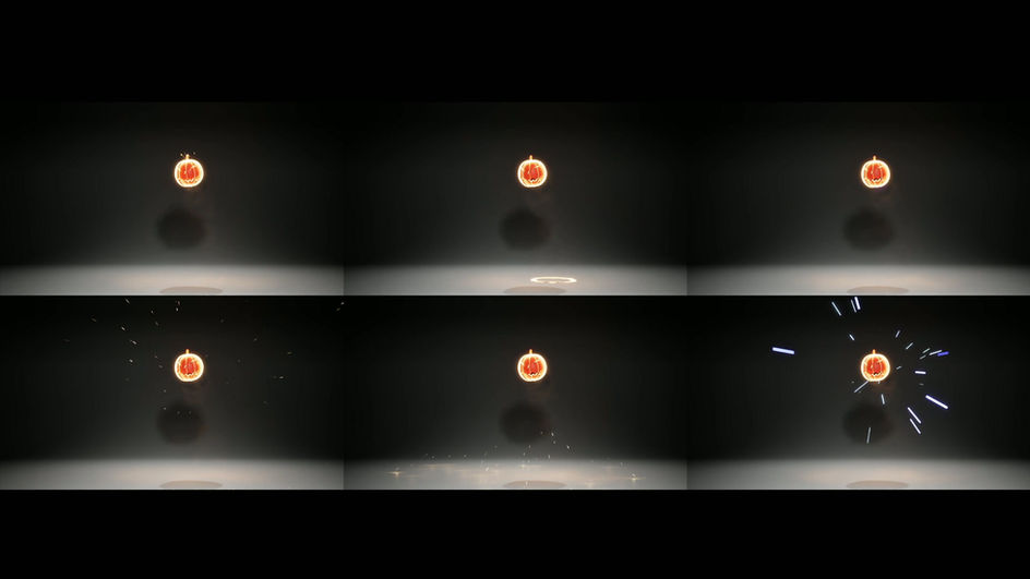 Trails were used to help the audience follow the pumpkin's movement, and sparks and droplets aim to give the pumpkin more personality. For the charge-up, I used 3 layers of point-attracted setups coming from different directions to build up the power and suspense of the upcoming explosion.